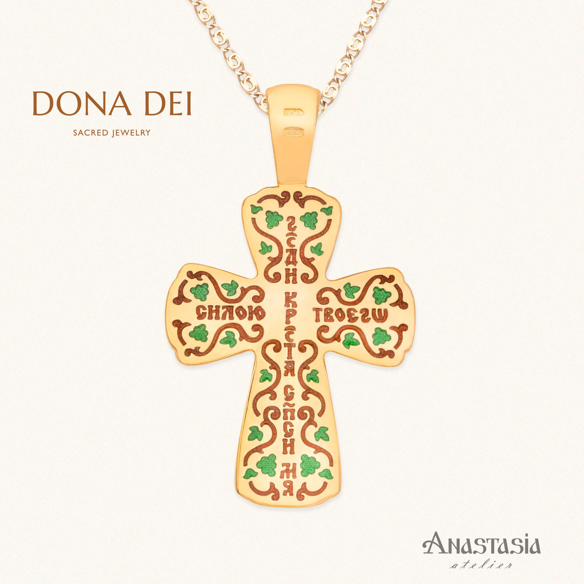 VINE. LORD, SAVE Me – Hot Enamel Russian Orthodox Cross Pendant, from Anastasia Atelier, St Petersburg